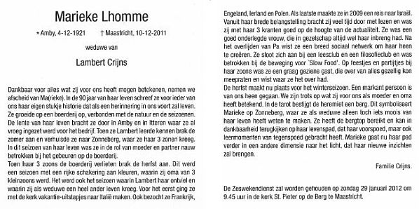 geboren te Eijsden. Zij overleed 13 december 2003 te