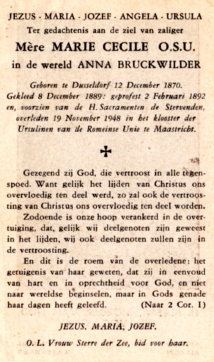 bijgezet te St. Pieter. Op 24 oktober 1952 trad zij in bij de