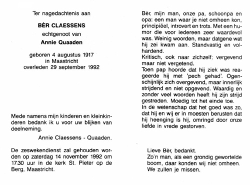 december 1986, 83 jaar te Maastricht en werd bijgezet op 11