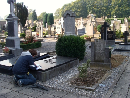 Na een aantal gesprekken met de adoptiehouders werd op 18 oktober 2010 bekeken welke werkzaamheden verricht moeten worden op de nieuwe plek voor het grafkruis. Het kindergraf van Fritske Heymen in vak D (D 10) moest geruimd worden, wegens verlopen van de grafhuur in 1999. Het achterstuk van dit kindergraf wordt schoongemaakt en herplaatst bij het monument voor het ongeboren kind. Fritske blijft gewoon op deze plek begraven; zijn grafrust wordt niet verstoord. De adoptiehouders krijgen er een "pleegkindje" bij. 19 november 2010 werd het fundament voor het grafkruis en het nieuwe voorwerk gemaakt. 24 maart 2011 werd de restauratie afgerond. Het vroeg 17de eeuwse grafkruis werd op de breukstukken gepend; het ruwe fundament werd behouden. Na droging van kruis en grondstuk zullen deze nog geïmpregneerd worden. Dit grafmonument is geadopteerd door Dhr. en Mevr. Ramaekers - Van der Linden.