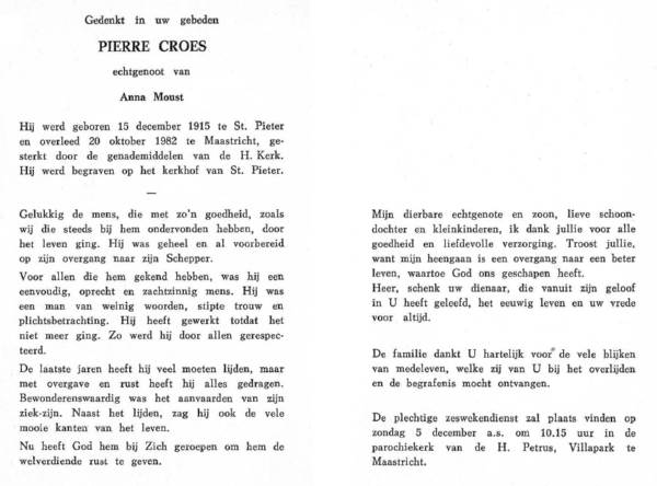 juni 1995, 82 jaar oud en werd begraven te St. Pieter. |