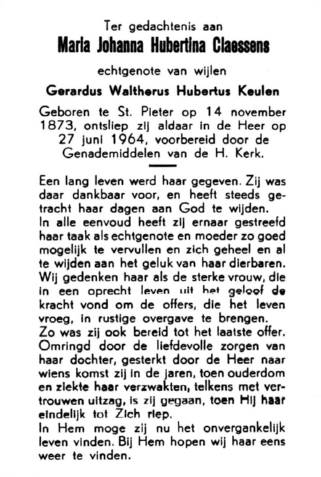 1999, 72 jaar oud te Maastricht en werd 20 oktober 1999 te Heerlen gecremeerd.