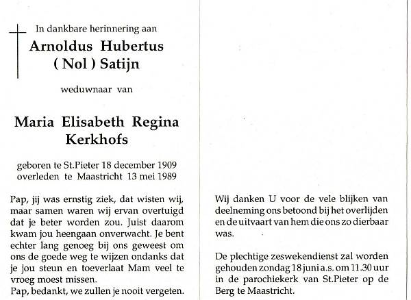 De crematie vond plaats op 21 maart 1998 te Geleen. 2 mei 1998 werd te St.