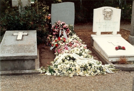 Zij werd gecremeerd en de as werd uitgestrooid bij het graf van haar echtgenoot