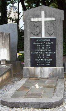 Elisabeth Mathilde KRAFT werd geboren op 19 november 1913 te St. Pieter. Mathilde en Maria Eduard Lambert KERBUSCH, zoon van Eduard Hubert KERBUSCH en Maria Christina JANSSEN, zijn 14 april 1939 getrouwd te Maastricht. Mathilde verongelukte 13 oktober 1957, 43 jaar oud en werd 17 oktober 1957 te St. Pieter begraven. Maria Eduard Lambert KERBUSCH werd geboren op 17 oktober 1913 te Maastricht. Gaston overleed 2 mei 1991, 77 jaar oud te Maastricht en werd 6 mei 1991 bijgezet te St. Pieter. Dochter Thea werd geboren op 21 juli 1940 te Maastricht. Zij verongelukte 13 oktober 1957, 17 jaar oud en werd 17 oktober 1957 te St. Pieter begraven. Alite JANSSEN werd geboren op 19 september 1915 te Maastricht. Zij overleed 10 november 1977, 62 jaar oud en werd 14 november 1977 begraven te St. Pieter in vak K (geruimd 2005). Zie: verdwenen of geruimde grafmonumenten.