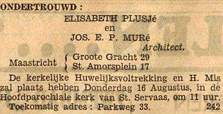 Maastricht. 1 mei 1924 kerkelijk huwelijk te St. Pieter; getuigen waren Hermanus