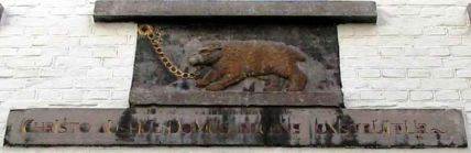 de Jodenstraat nr. 1 vinden we momenteel een geketende beer zonder onderschrift,